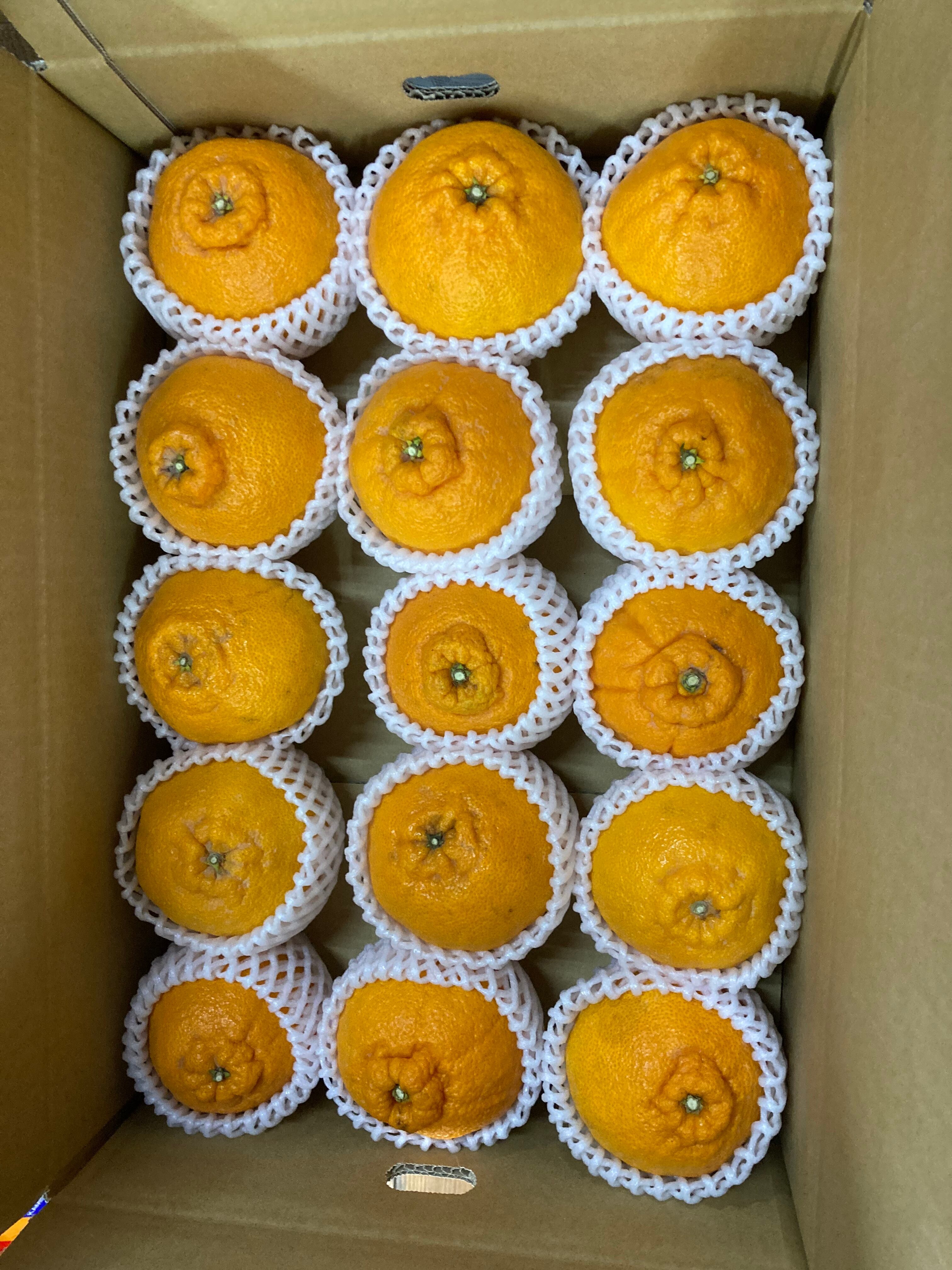 みかん5キロ箱に不知火が潰れない程度に箱詰めし